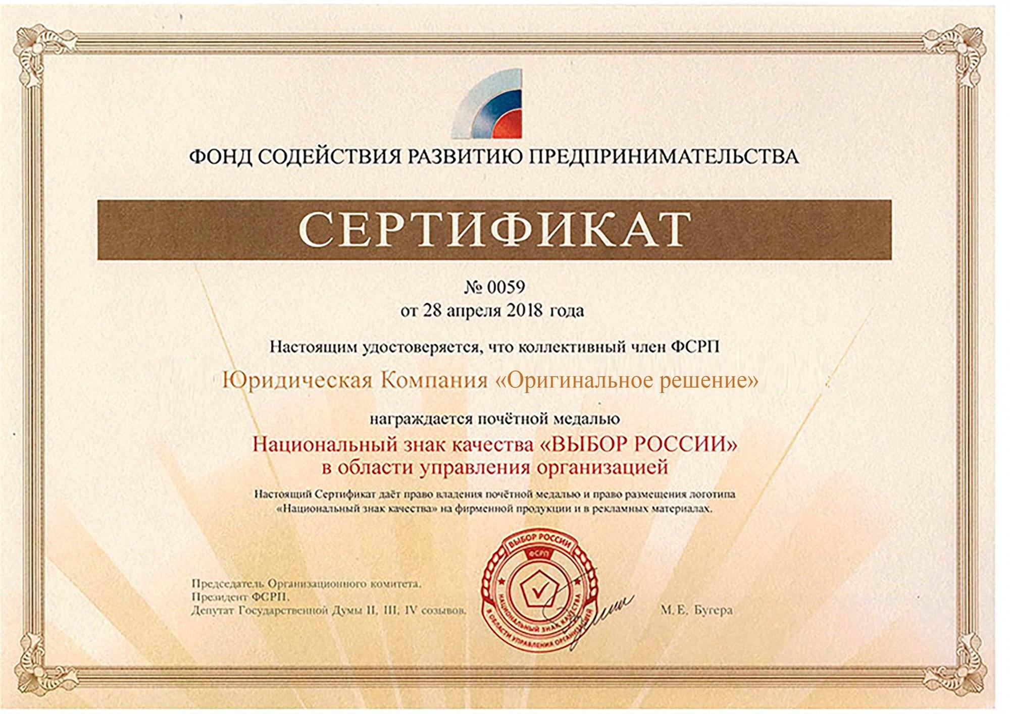 Сертификат знак качества