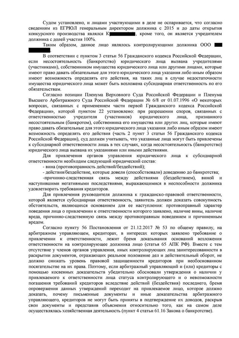 Директор успешно защищен от субсидиарной ответственности