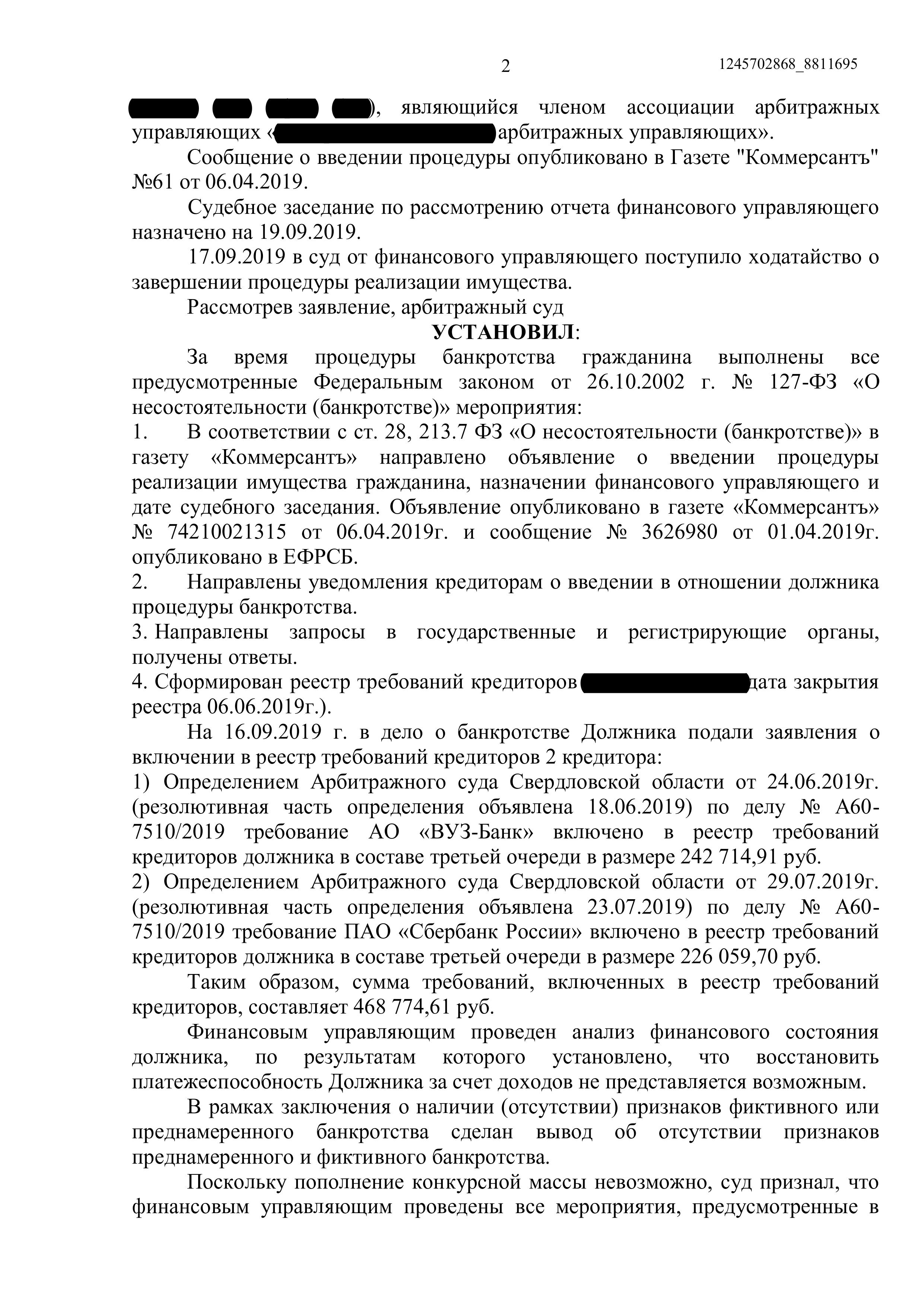 Завершить процедуру банкротства