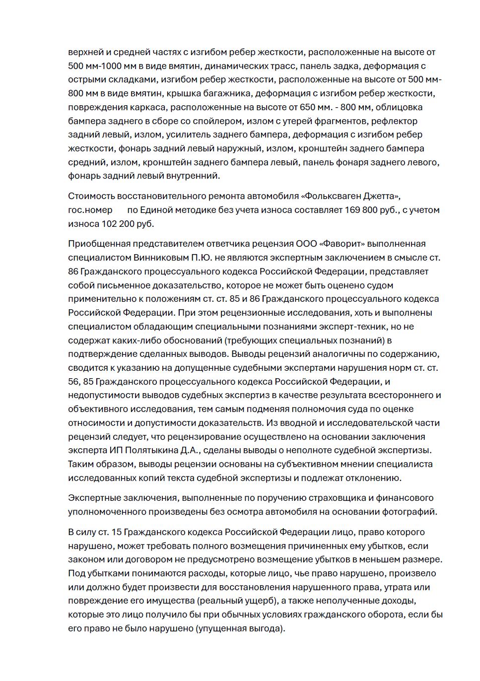 • Защищены права клиента по регрессному иску страховой компании