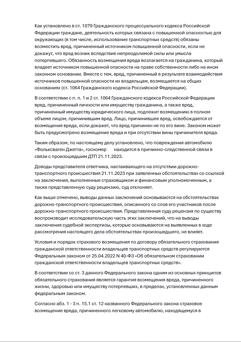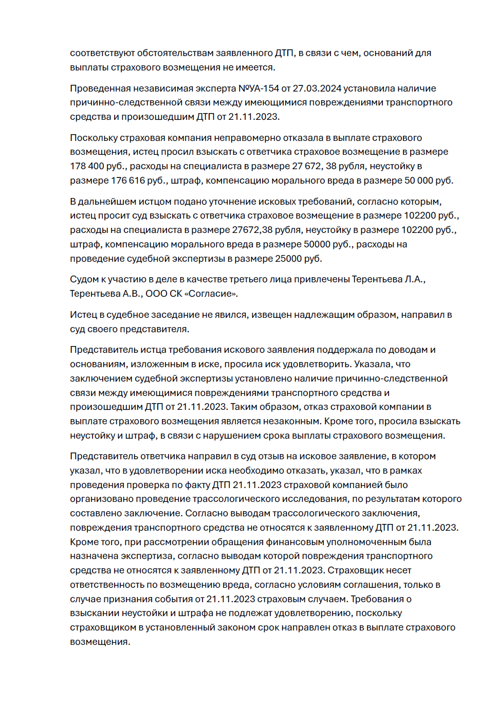 Мы инициировали и настояли на проведении судебной автотехнической экспертизы, которая, в отличие от заочных исследований страховой компании, основывалась на реальном осмотре автомобиля. Её вывод о наличии причинно-следственной связи стал центральным неопровержимым аргументом. Параллельно мы выстроили позицию на взыскание не только основного возмещения, но и всей сопутствующей ответственности страховщика за необоснованный отказ и просрочку.