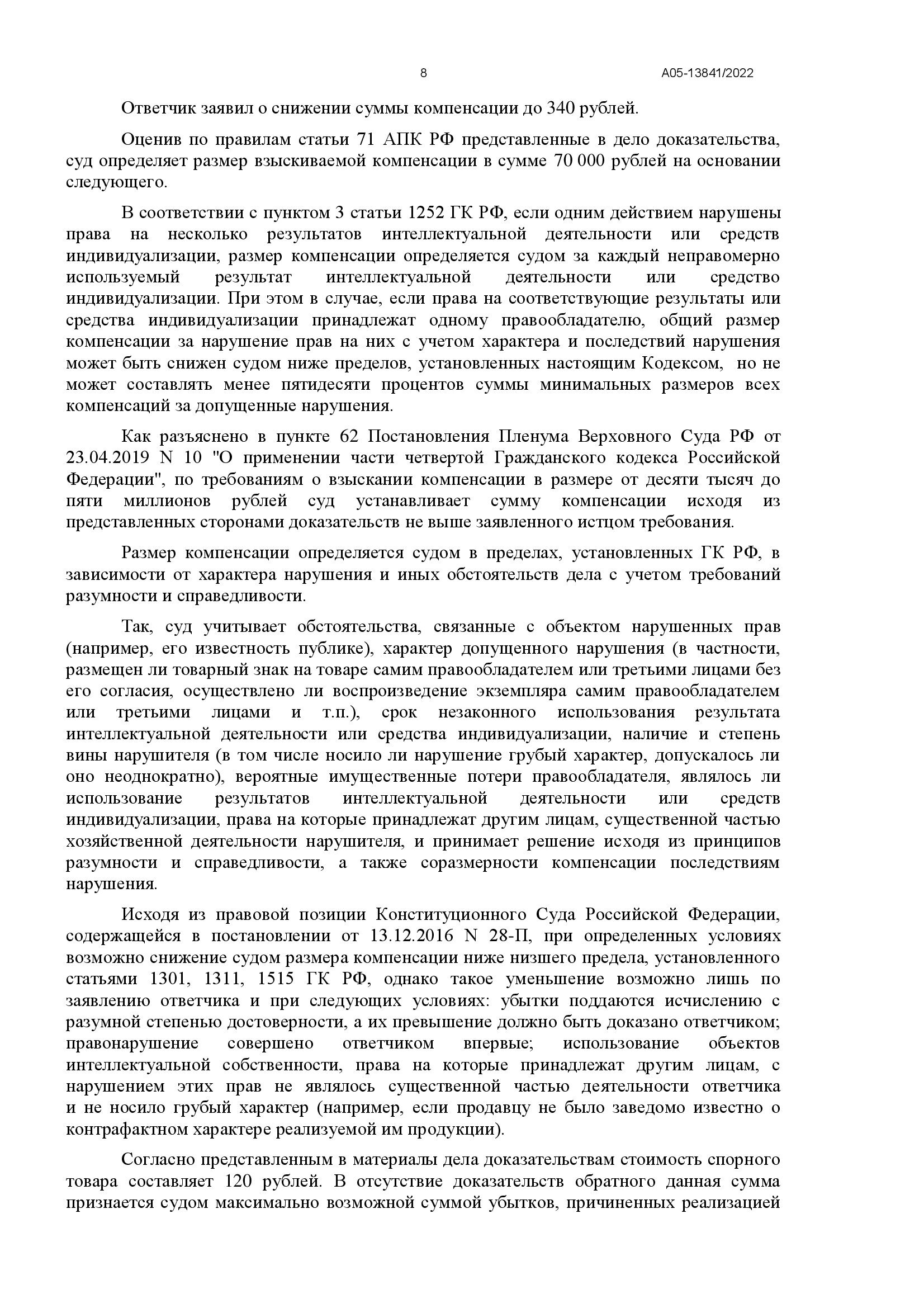 Суд признал факт нарушения, но согласился с доводами защиты и снизил общий размер компенсации: