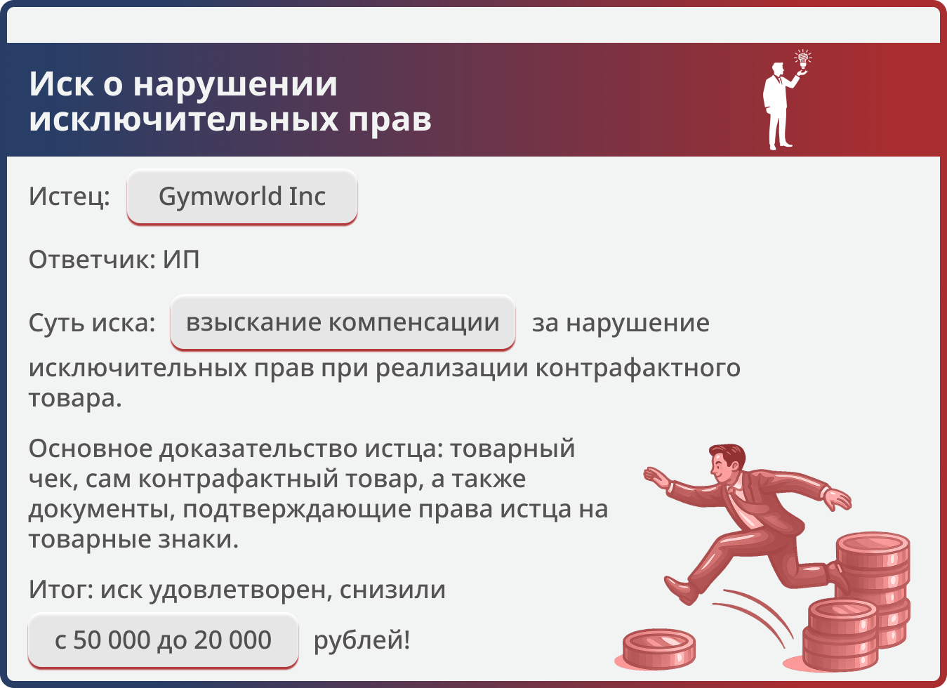 Защитили бизнес ИП: снизили компенсацию за контрафакт вдвое и утвердили мировое соглашение