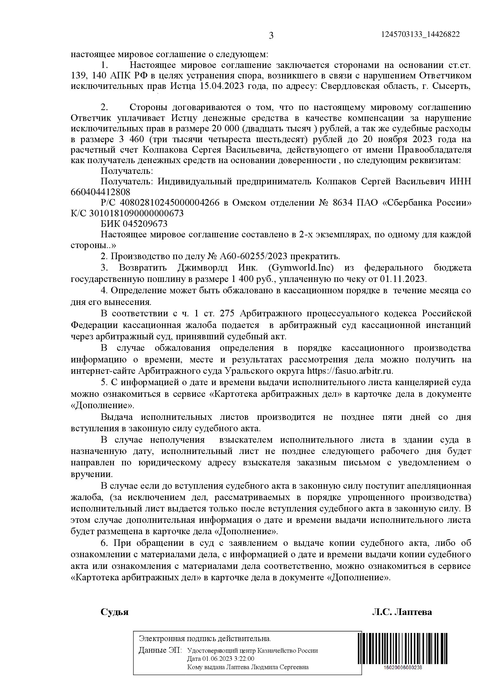 Дело рассматривалось в Арбитражном суде Свердловской области в порядке упрощённого производства. Наша стратегия изначально строилась не на отрицании нарушения, а на минимизации последствий. Мы оперативно связались с представителем истца и предложили обсудить условия мирового соглашения.