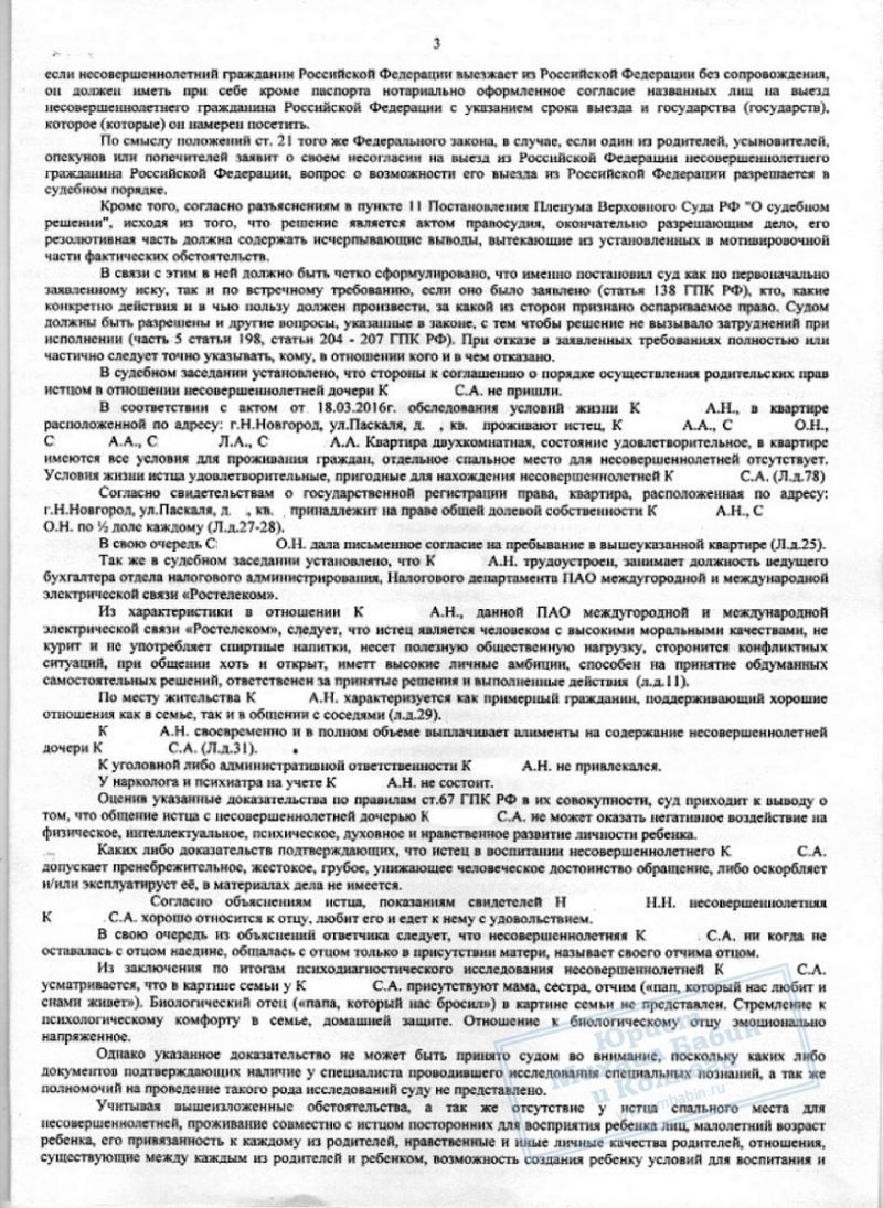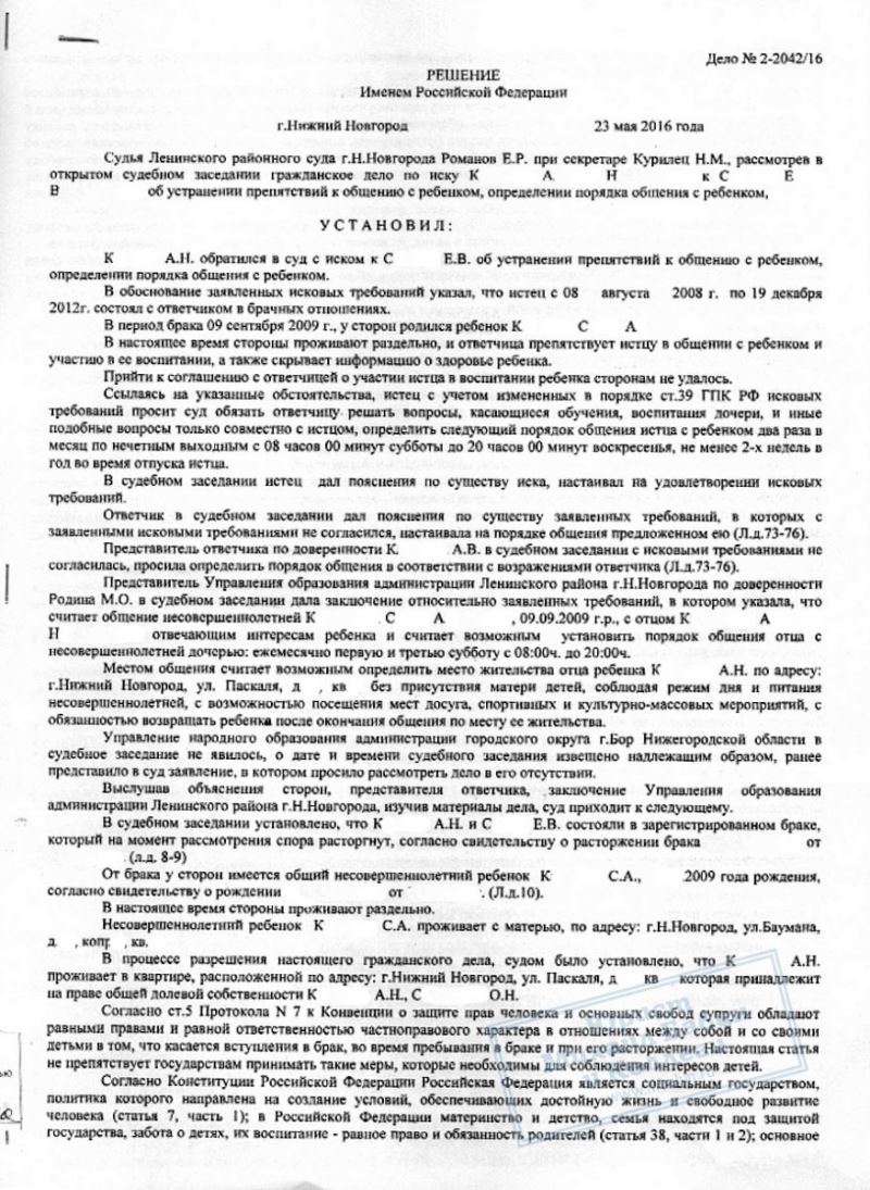 Юрист отстаивала интересы матери на суде и смогла добиться, чтобы общение отца с дочерью ограничивалось дневным временем по субботам дважды в месяц.