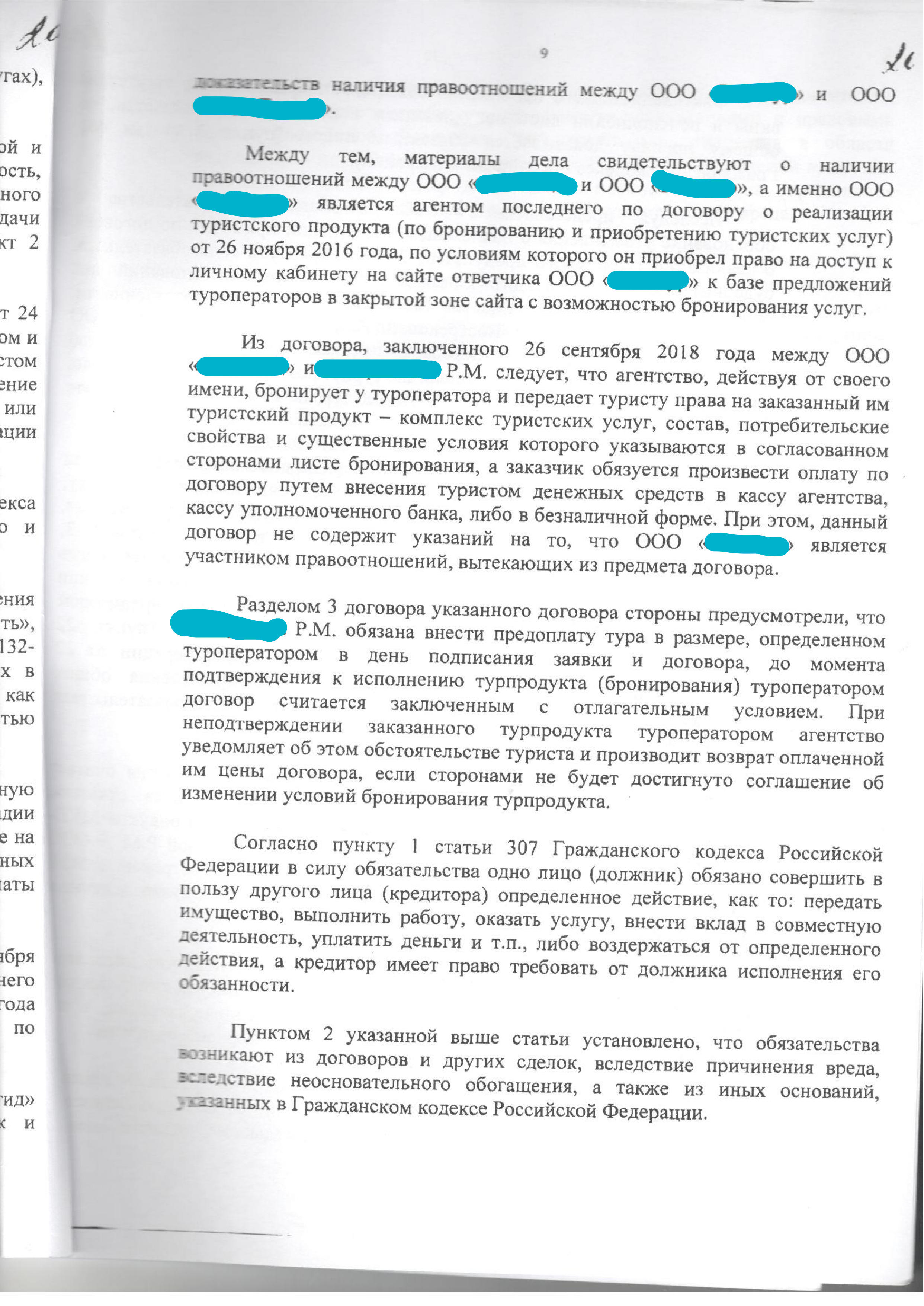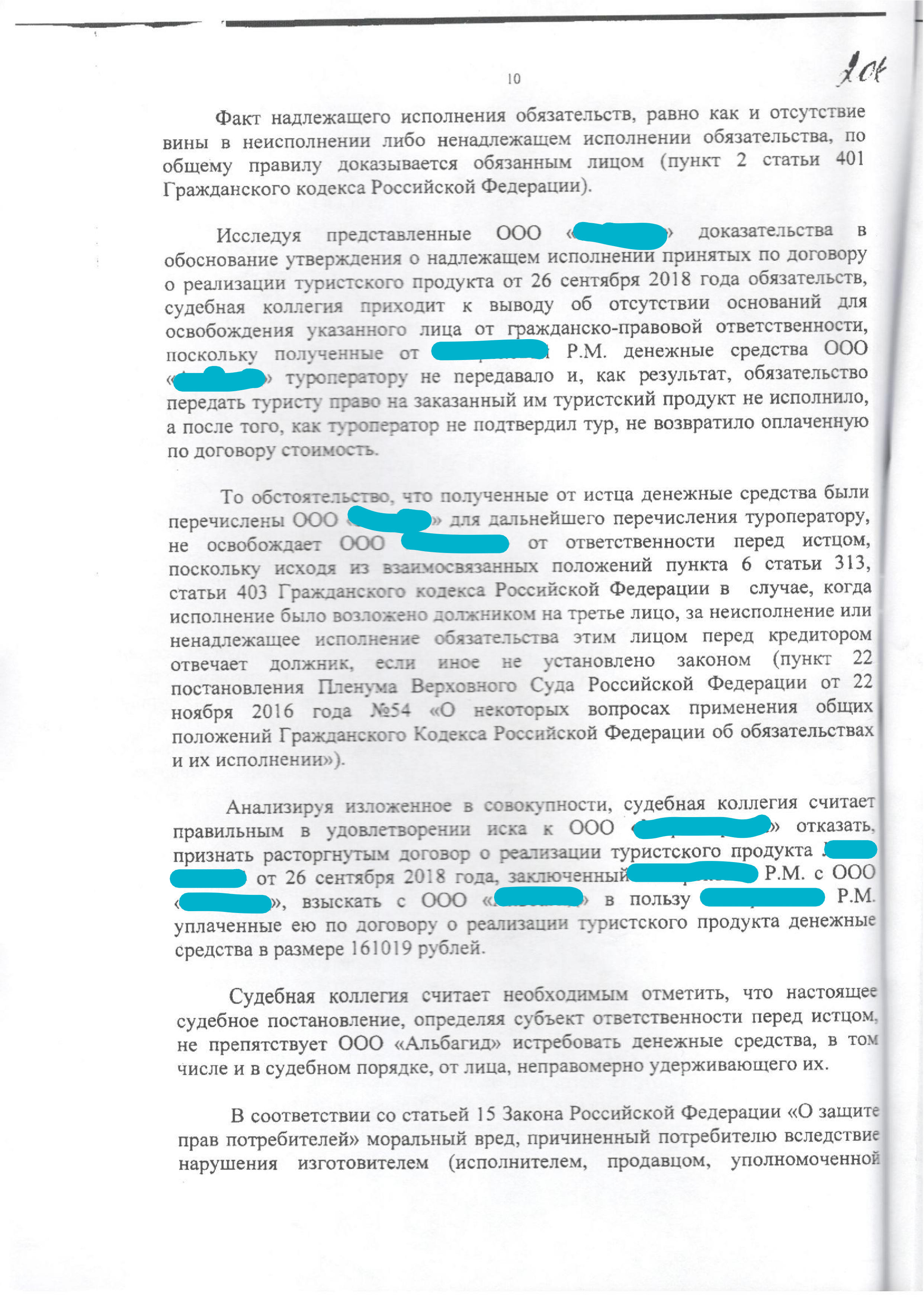 Дело о возврате денежных средств за тур