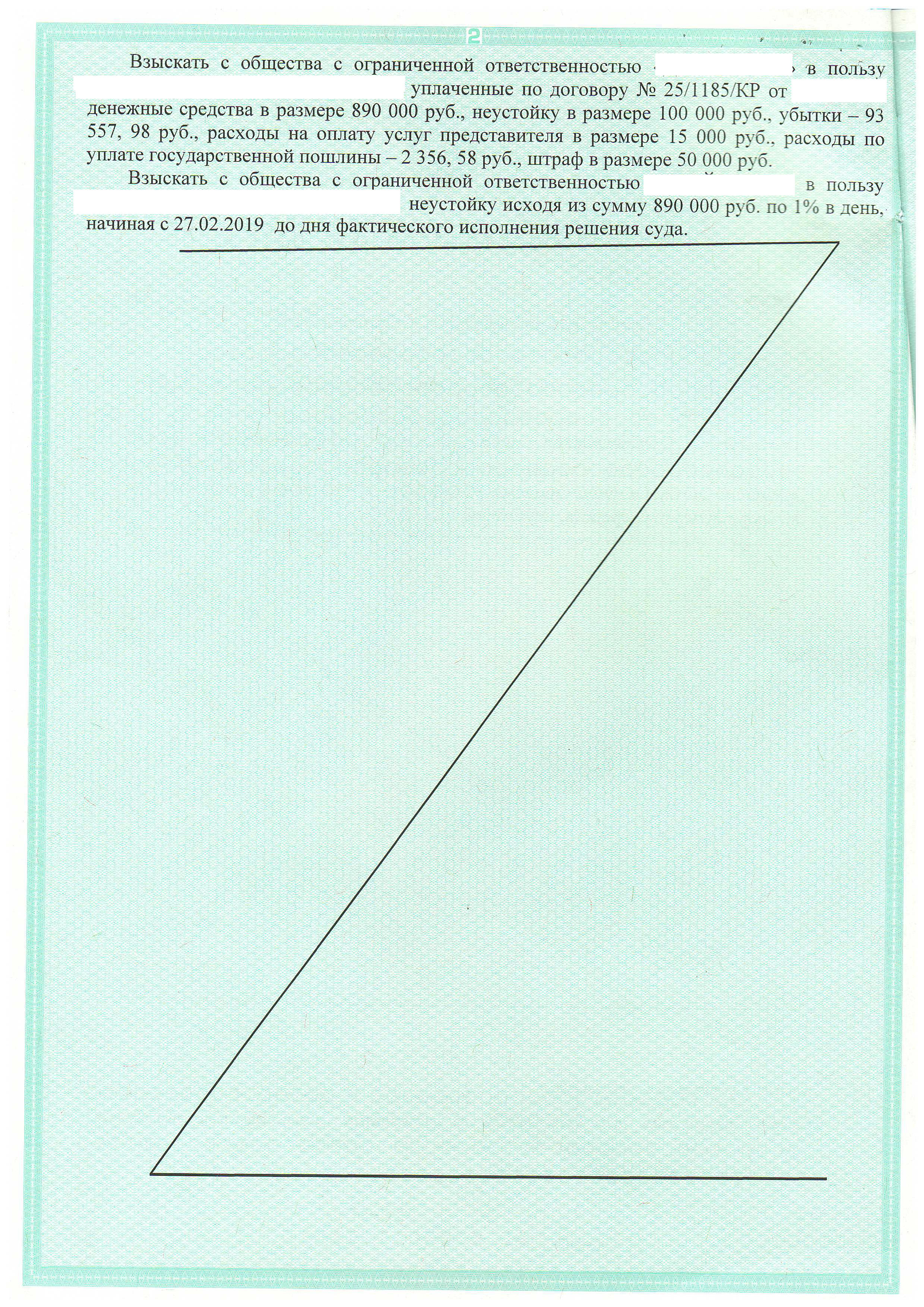 • Удовлетворены требования клиента на сумму