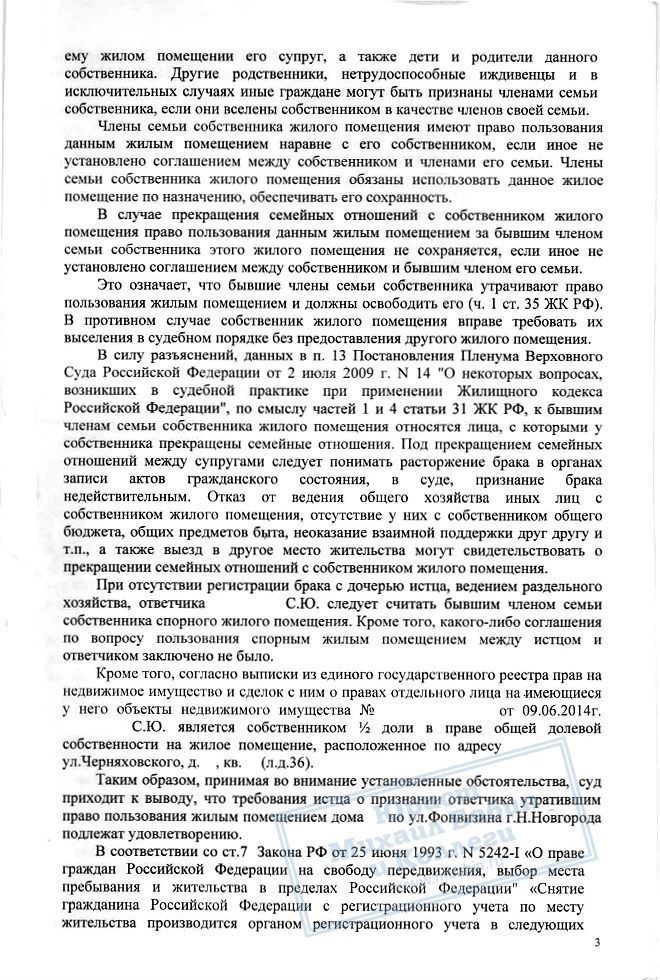 Помогли выписать из квартиры бывшего супруга